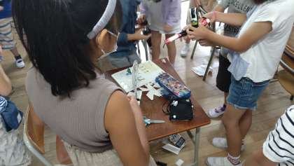 うごくおもちゃづくりに取り組みました。ゴムなどで工夫して動く仕組みを考えています。