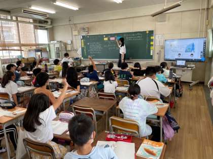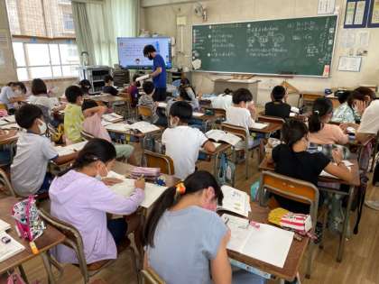 4年生は、算数で倍の計算の仕方を学習しました。教育実習生も授業をしました。