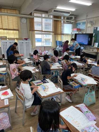 国語の時間に教科書の詩を「試写」しました。文字を丁寧に書いて、絵をかいて仕上げていました。
