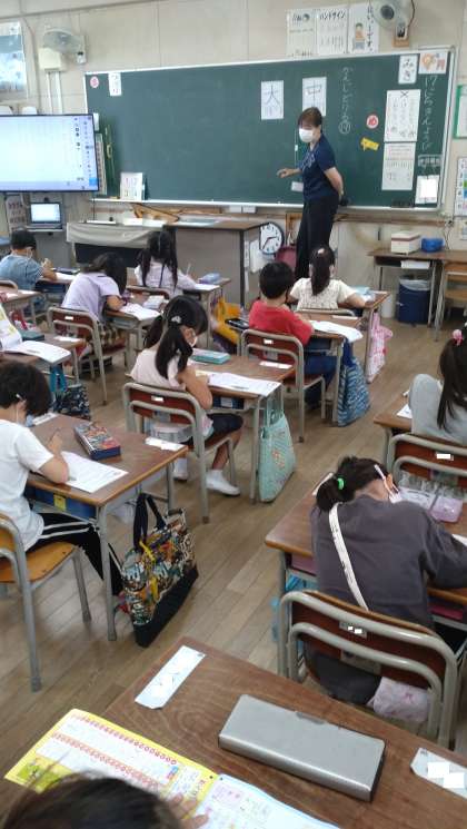 新しい漢字の学習をしました。「中」「大」などの新出漢字が文章の中でどのように使われているかを確かめています。