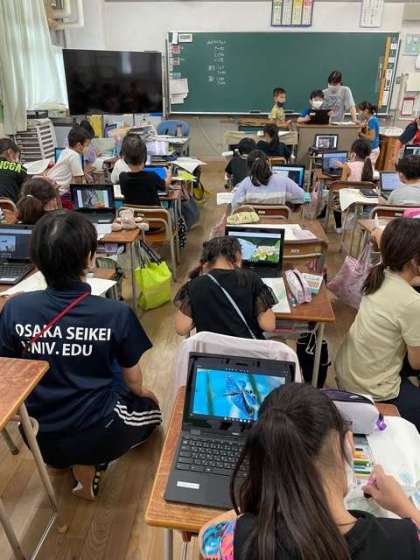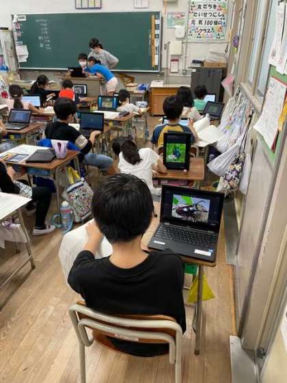 図画工作で一人一台端末で調べた虫の絵を描きました。