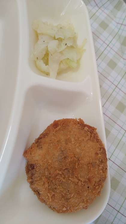 今日の給食は、チキンレバーカツ、ケチャップ煮、キャベツのバジル風味サラダ、パン、牛乳です。