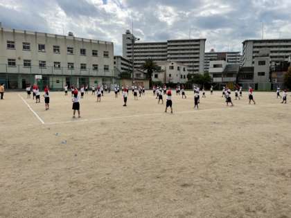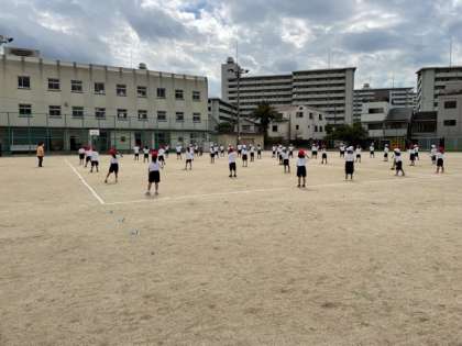 運動会の練習を運動場でしました。熱中症にならないように水分補給をしながら練習に取り組みました。声をだしてがんばりました。