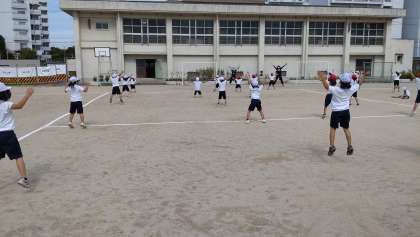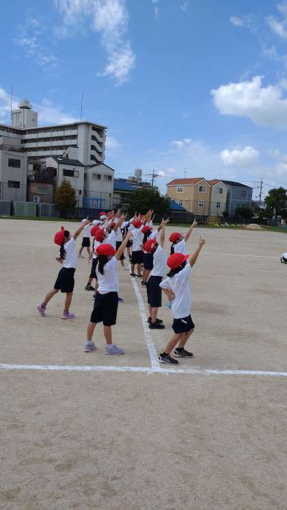 団体演技の練習をしました。体をいっぱい使って、楽しそうに一生懸命に練習しています。ポーズもビシッと決まっています。