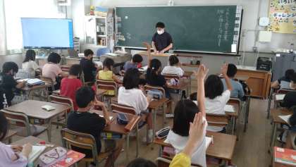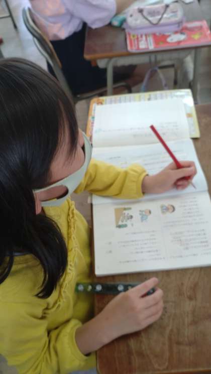 主語と述語の学習をしました。教科書の文章から主語と述語を見つけています。