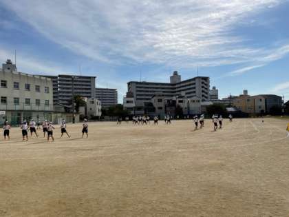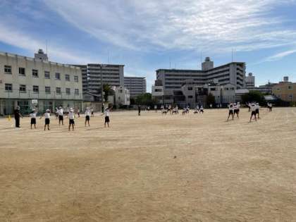 5年生は、運動会に向けて団体演技の「よっちょれソーラン」を練習しました。暑い日差しでしたが、がんばって練習できました。楽器の音が響いていました。