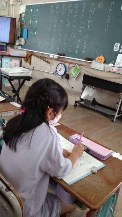 漢字の学習をしました。漢字を使った短文を丁寧にノートに書いています。