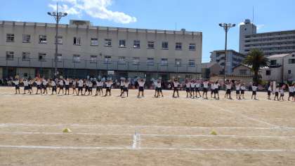 一年生の団体演技は、「笑顔でDreamin on」でした。体全体を使って、リズムに合わせてたのしく踊っていました。笑顔いっぱいの演技でした。