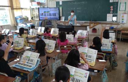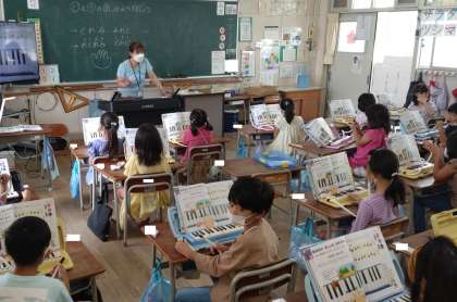鍵盤ハーモニカの演奏をしました。「ドレミ」「ミレド」など、「ド」と「ソ」の音階を練習しています。