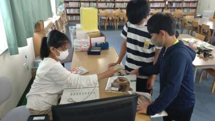 6年生の児童が本の貸出をしている様子です。図書もデジタル化が進み貸出もバーコードでスムーズにできるようになっています。読書の秋です。いろいろな本をたくさん読んでほしいと思います。