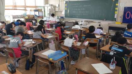 「いいとこ見つけカード」の取り組みをしています。友だちのよいところを書いています。いろいろな学校生活の場面で発見したよいところをカードを回して書いていきます。学級で、みんながお互いに認め合えるように定期的に取り組んでいます。授業中のことやそうじの時間、運動会の場面など、子どもたちは、友だちのよいところをどんどん書いています。