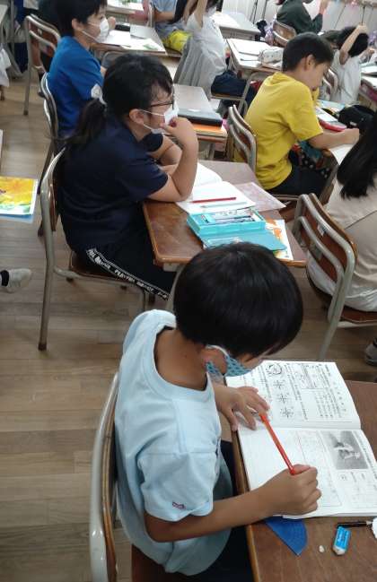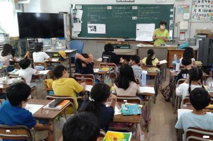 日なたと日かげの地面の様子や温度について学習しました。予想をたてて話し合っています。