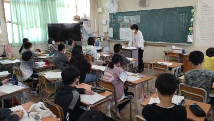 栄養教諭の先生に来ていただき栄養指導が行われました。給食の基本と栄養バランスをお手本に、一食分の食事を考えました。