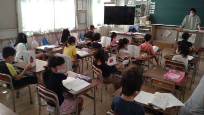 主語と述語について学習しました。いろいろな文を使って,主語と述語の関係を確かめています。