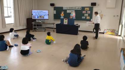 大阪府警少年サポートセンターから指導員の方に来ていただき、非行防止教室がありました。いろいろな犯罪の危険性について学びました。