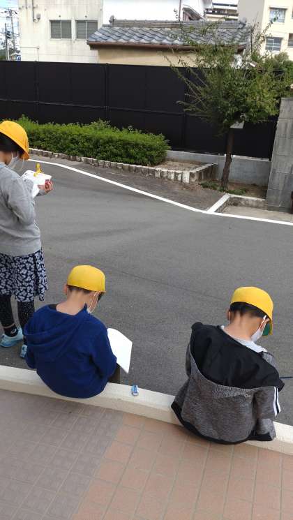 季節と生き物の様子について観察しました。学習園周辺で、春と夏で生き物の様子がどのようになっているか観察しています。下の写真は、梅の様子を観察記録する子どもたちです。