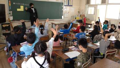 大阪成蹊大学の先生に来ていただき、4年生が算数で研究授業に取り組みました。面積の学習で、これまでに学習した面積の公式を使って、図形の面積を求める学習です。子どもたちは、自分の考えを積極的に発表していました。