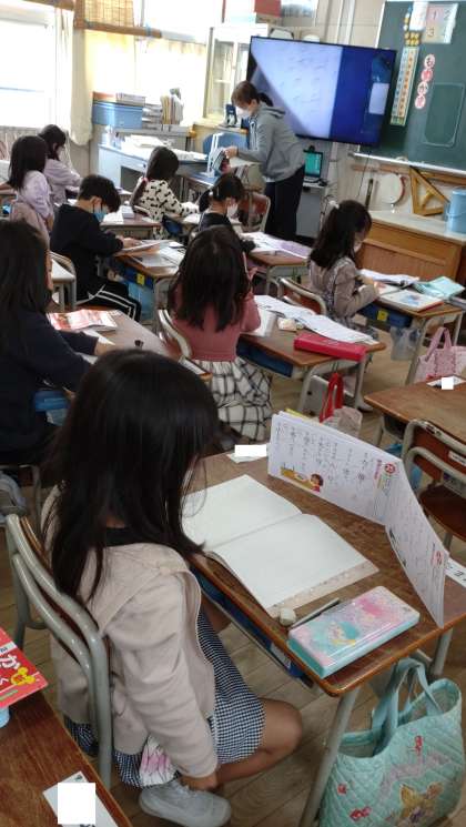 漢字の学習をしました。正しいノートの使い方などを改めて確かめて、漢字の練習に取り組みました。