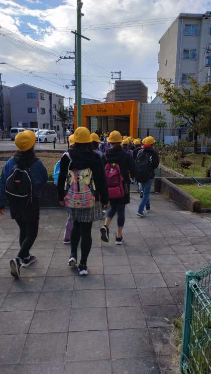 5年生は、遠足で海遊館に出発しました。天候にも恵まれ元気に出発しました。