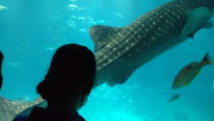 海遊館の中の様子です、ペンギンやジンベイザメが泳いでいます。
