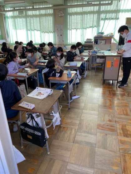 外国語の授業で、友だちと外国語で今まで習った言葉を使って会話をしました。