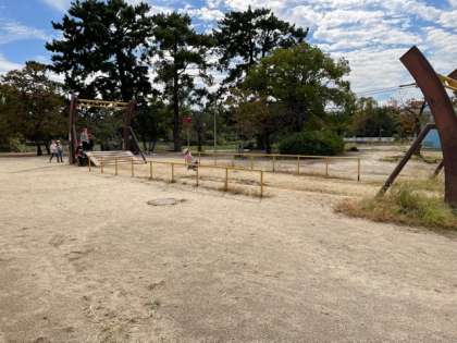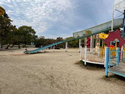 いろいろな遊具があり、長いすべり台もあります。