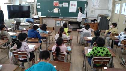 歯科衛生士の先生に来ていただき、歯みがき指導がありました。歯の並び方や虫歯菌、歯垢などを教えてもらったり、動画を使っての正しい歯みがきの仕方などを学んだりしています。