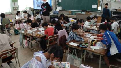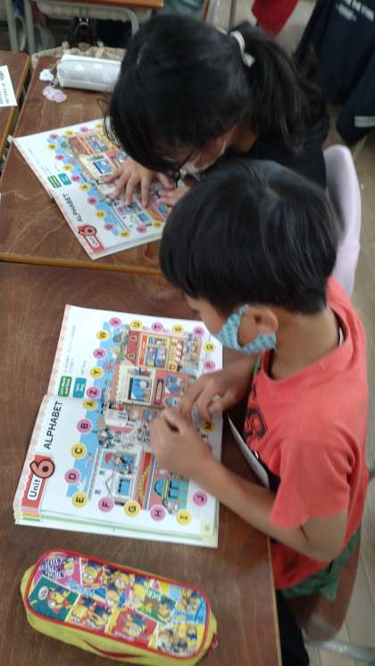 C-NETの先生の授業がありました。アルファベッドの学習をしました。テキストの町の風景からアルファベッドを見つけています。