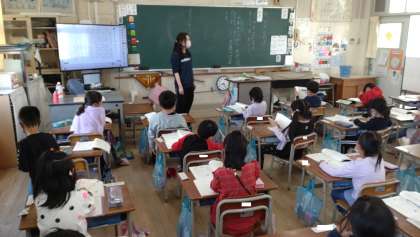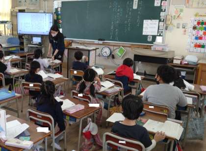 「書くこと」についての学習をしました。様子を伝える文章を書くために、教科書の例文から学んでいます。