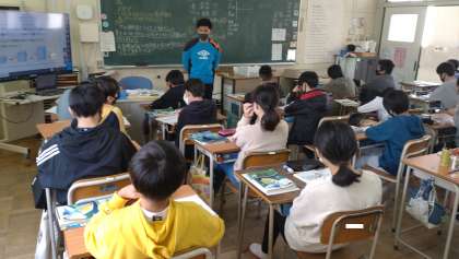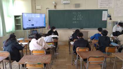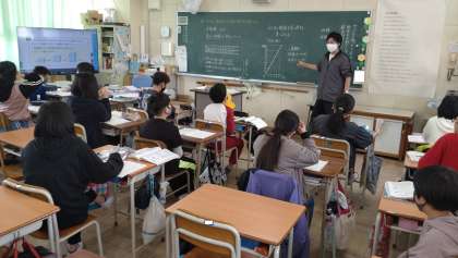 比例の学習をしました。ともなって変わる2つの数量を表や式、グラフを使って変化や特徴を見つけて2つの数量の関係を考察したり、練習問題に取り組んだりしています。