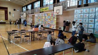 6年生が、講堂にて作品展鑑賞をしました。各学年の作品を鑑賞して、感想を書いています。