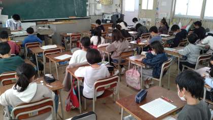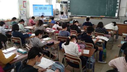 朝の時間に、算数チャレンジに取り組みました。決められた時間の中で、基礎的な計算を行います。子どもたちの学習の「流暢性」(りゅうちょうせい)を確かめています。大阪教育大学大学院と連携して、データを分析して指導の工夫に役立てています。子どもたちはとても集中して計算に取り組んでいます。