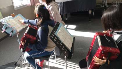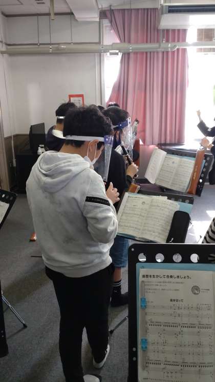 合奏練習に取り組みました。それぞれの楽器のパートに分かれて、合奏曲「風を切って」の練習をしています。