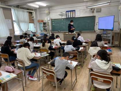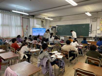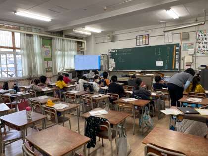 算数のかけ算の学習で、筆算で一の位に繰り上がりのある計算の仕方を学習しました。