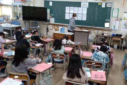 朝の時間に漢字チャレンジに取り組みました。1年生は、漢数字の学習をしています。