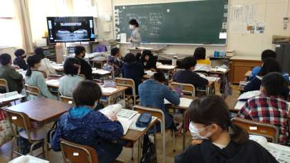 自動車産業の学習をしました。この授業では、新しい自動車がどのようにうみだされるかを話し合っています。「環境」や「安全性」などを調べて、考えています。