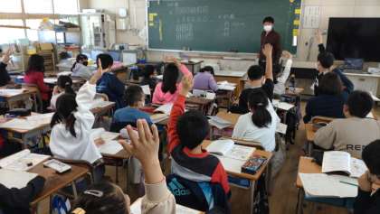 概数の学習をしました。概数の意味を確かめたり、プリントで四捨五入の課題を解いています。
