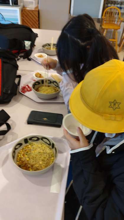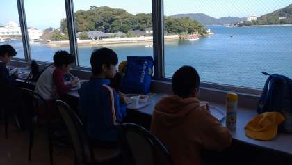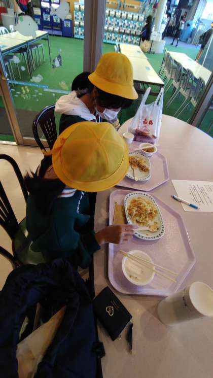 修学旅行 2日目 鳥羽水族館で昼食を食べています。