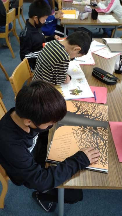 読書活動をしました。いろいろな種類の本を熱心に読んでいます。本も真剣に選んでいます。