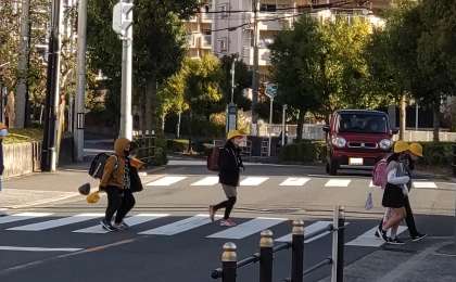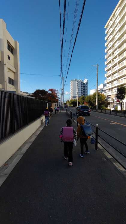 11月24日(水)、本日は、C-NETの授業、6年生卒業アルバムの個人撮影があります。よい天気の下、子どもたちは交通ルールを守って元気に登校しています。