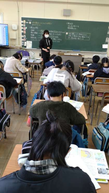日本の輸出について学習しました。統計資料から、自動車や精密機械等の輸出品を調べその特色について考えています。