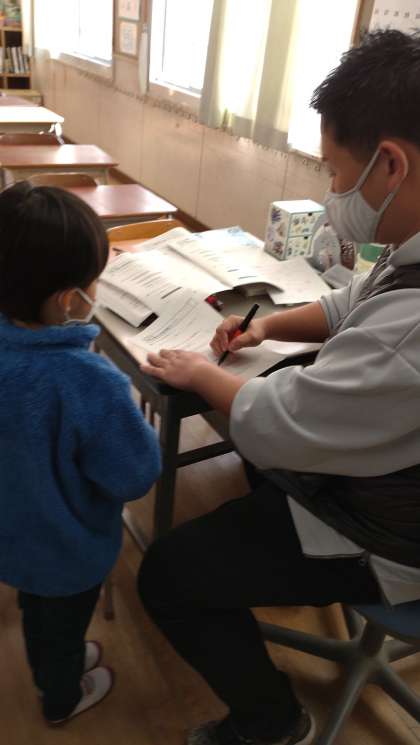 分数の学習をしました。プリントを使い、これまでの学習を振り返っています。答え合わせも丁寧に取り組んでいます。