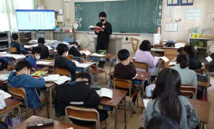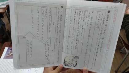 物語文「ごんぎつね」を学習しました。物語全体の「時」「場所」「人物」を読み取っています。それらをワークシートにまとめています。