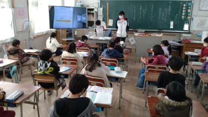 「しょうかいしょう」という学習で、自分の興味のあることについて、調べて発表しています。点字ブロックなどを紹介している児童もいました。
