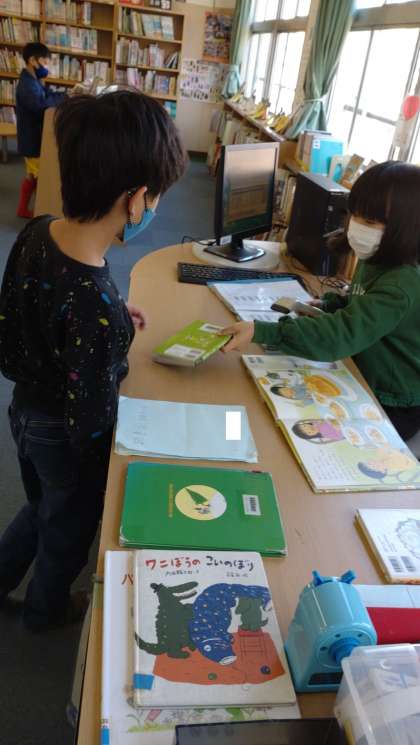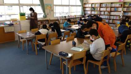 毎週金曜日に、学校図書館補助員の方が、本の読み聞かせ、図書室のレイアウトづくりや本の貸出ソフトの整備などをしています。写真は、4年生の読書活動の様子です。図書係の児童も活躍しています。