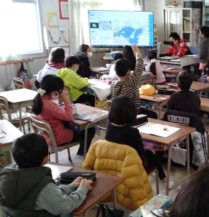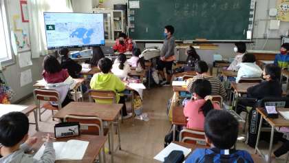 土日にあった出来事を発表しました。旅行など行った場所を地図で説明しています。