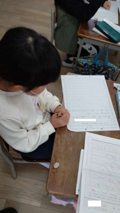 作文の学習をしました。下書きから清書に取り組んでいます。跳び箱を跳べたことなど、身近なテーマで作文を書いています。