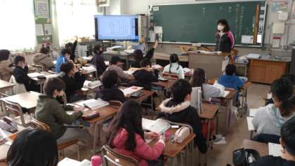 自分の考えを伝える文章の学習をしました。教科書の例文から、文章の構成を学んでいます。
