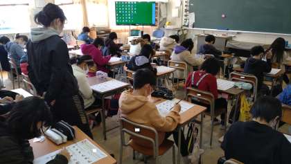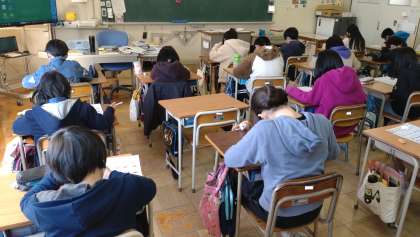 学習の振り返りをしました。英語のリスニングの課題に取り組んでいます。