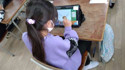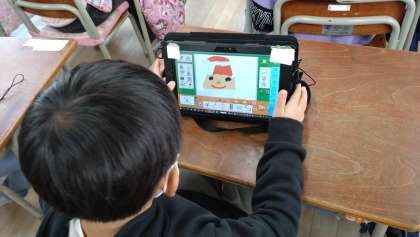 タブレットを使ってクリスマスの絵を描画しました。アプリケーションソフト「ピクチャーキッズ」を上手に操作しています。